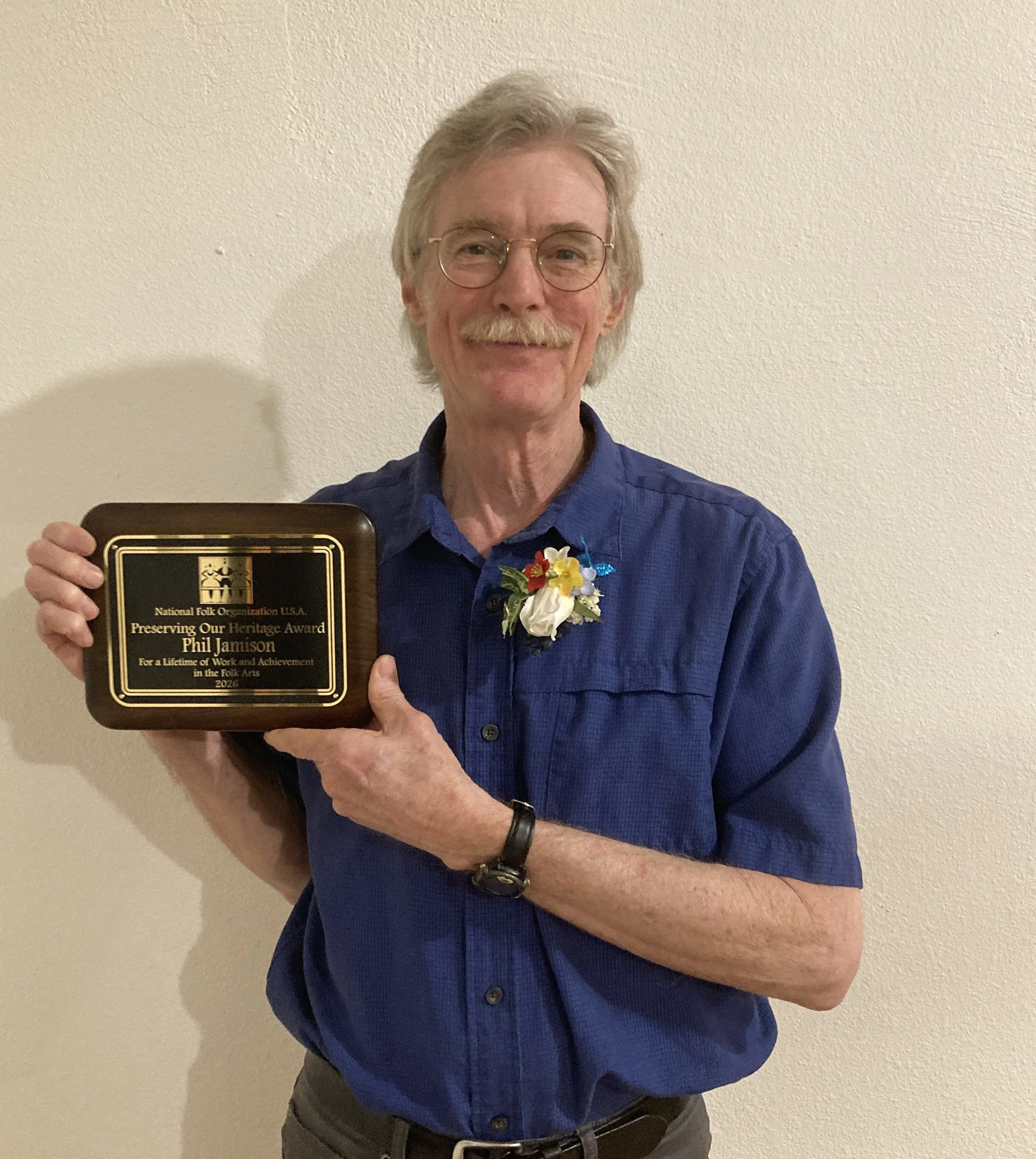 Earlier this month, I attended the annual conference of the National Folk Organization (NFO) in Durham, North Carolina. This group promotes cultural traditions, in particular folk dance and folk arts, and the weekend was filled with presentations, performances, and dance workshops. I called square dances, taught flatfooting, and gave a presentation about the Appalachian traditions of music and dance, and I felt honored and extremely grateful to receive the NFO’s Heritage Award.